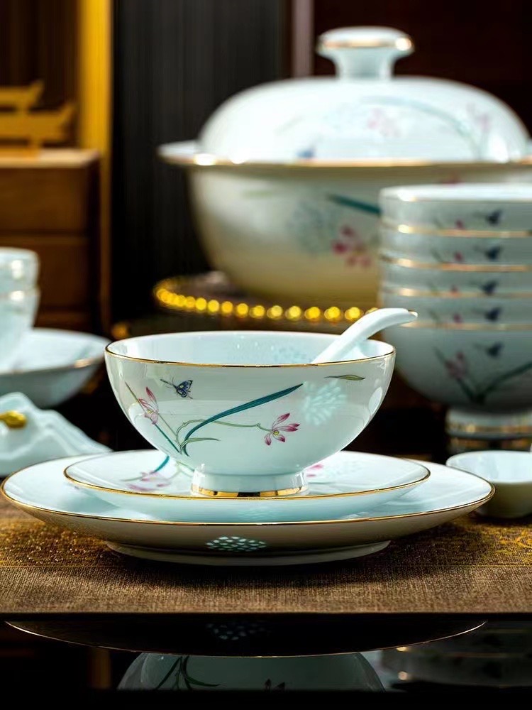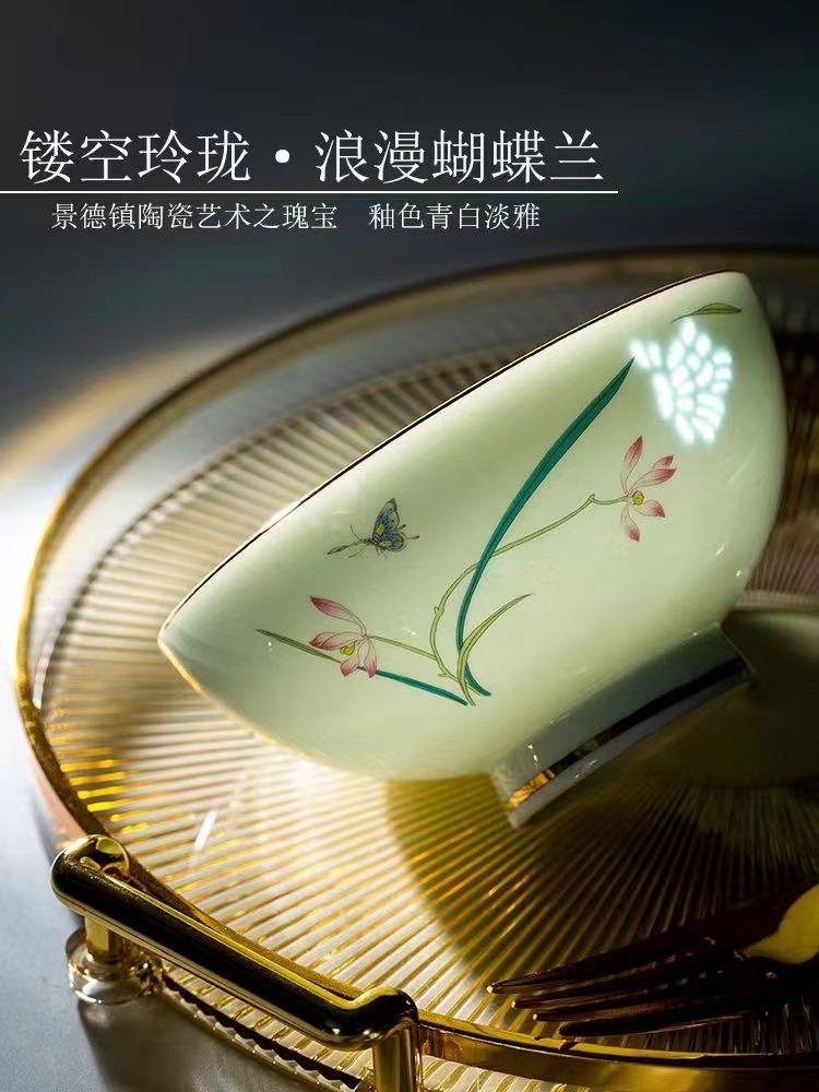镂空玲珑 .浪漫蝴蝶兰陶瓷餐具