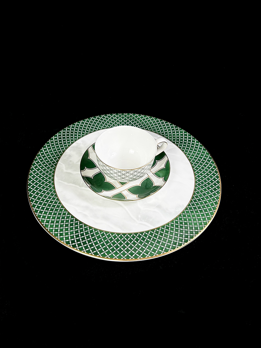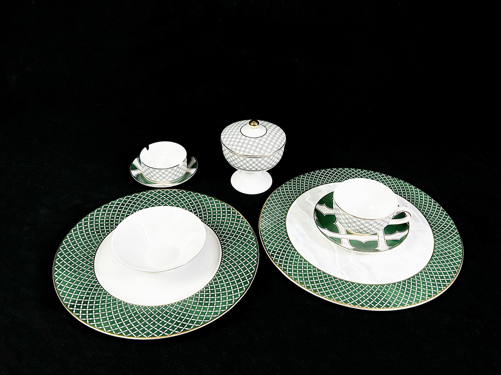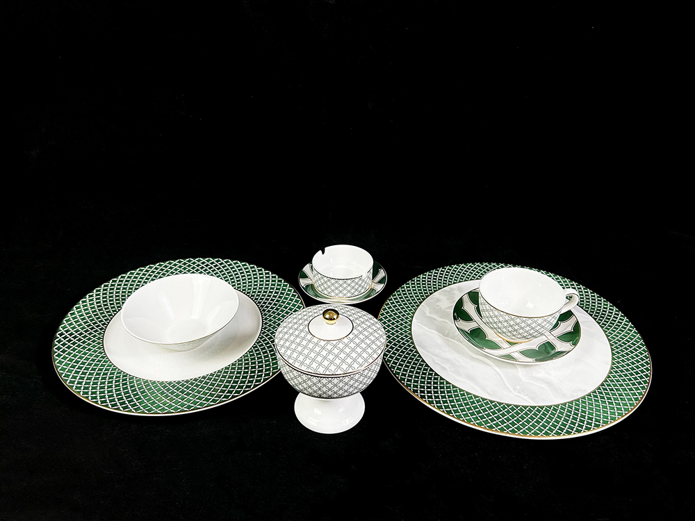 客户定制 经典网纹陶瓷描金四叶草餐具